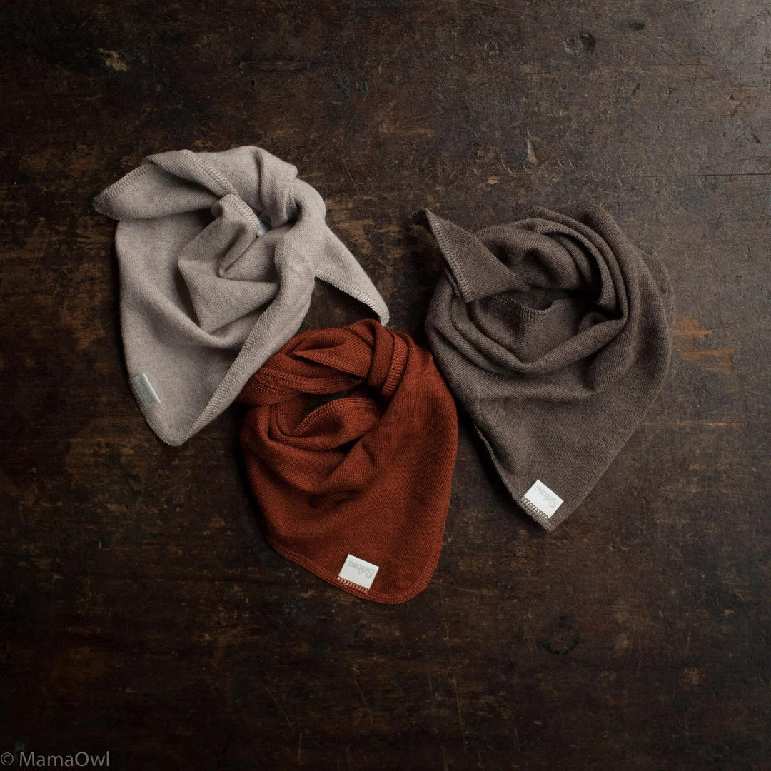 A sweet and cosy knitted neckcloth in a soft Merino Wool. Free of harmful substances, breathable, sweat absorbent and stain resistant. Great used as a small scarf and works well as a dribble bib. Wool will keep the skin warm even when wet, so this item is perfect for use on a teething baby though Autumn and Winter when they might otherwise be uncomfortable with cold wet soaked clothes. From dribbling. The wool will absorb liquid but it will keep the skin warm.