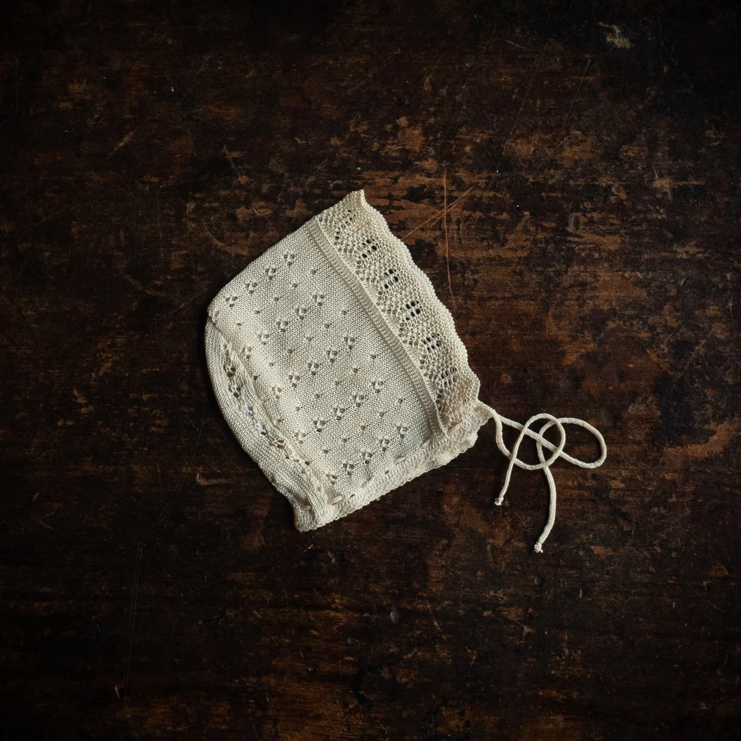 Lace vintage style bonnet in 100% shappe silk.Â