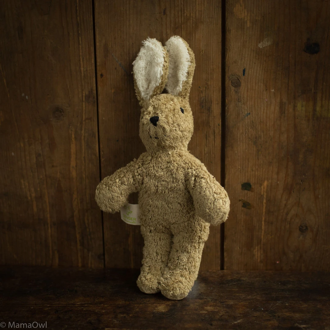 This Baby Rabbit is super soft, and looking for a new home. Due to the Organic Cotton Plush, this toy can safely be put into the mouth. This size is perfect for little ones.