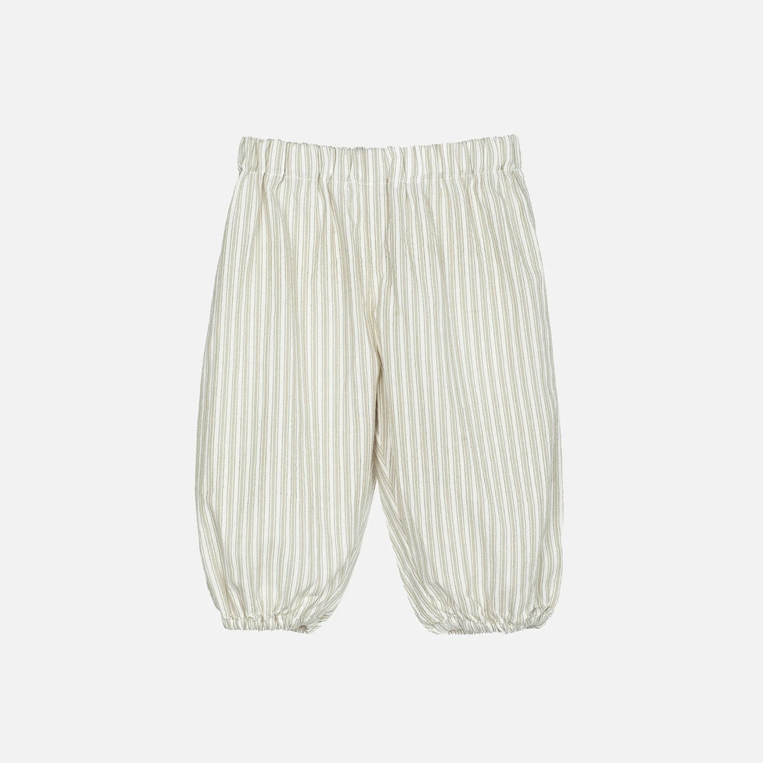 Soft lightweight woven cotton baby pants in a timeless stripe fabric.