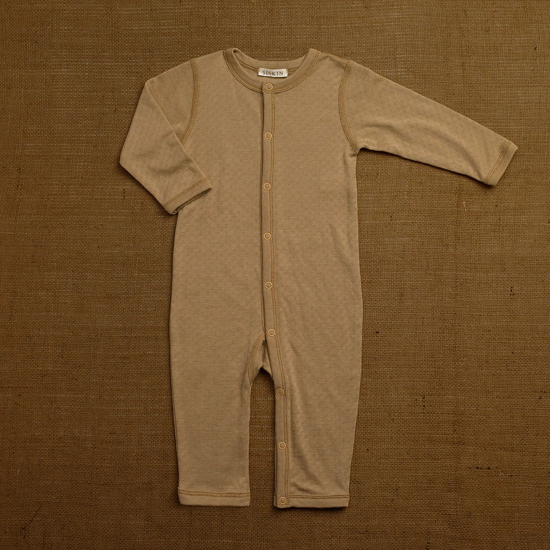 Super soft 85% Wool 15% Silk Romper with a subtle pointelle pattern to add texture.