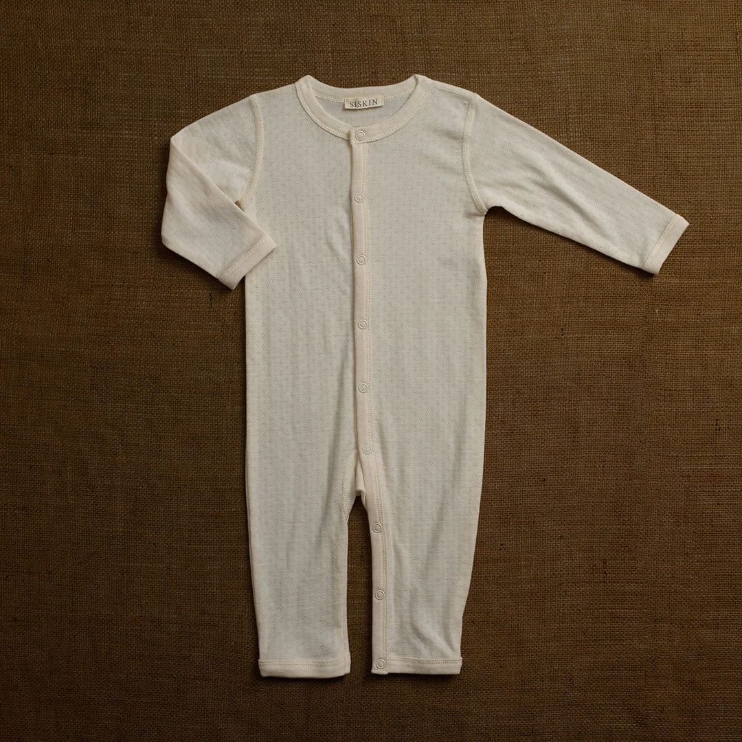 Super soft 85% Wool 15% Silk Romper with a subtle pointelle pattern to add texture.