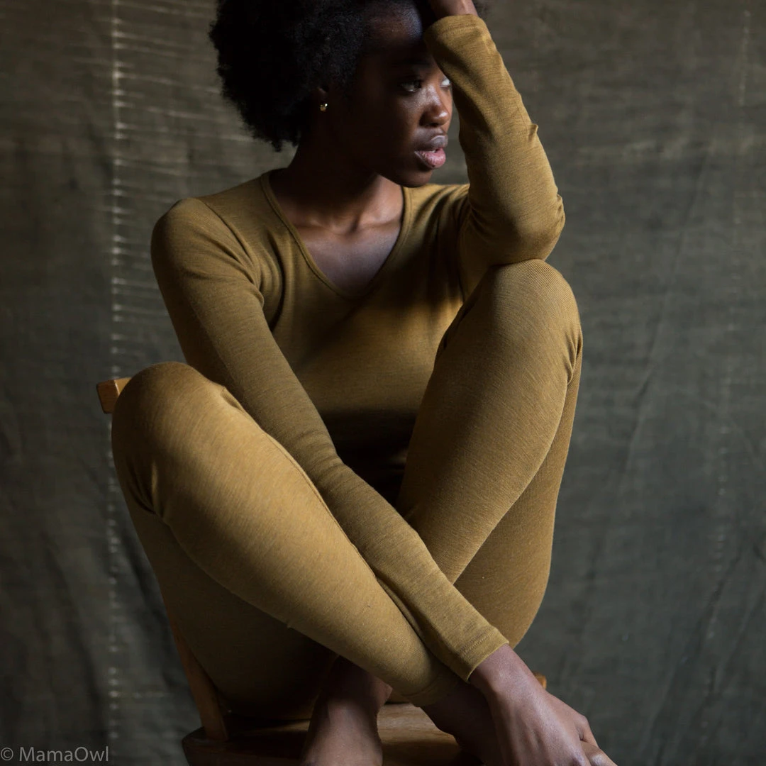 Soft and breathable leggings for women in our exclusive SISKIN By Engel colours. They are very stretchy and perfect for keeping you warm every day. Wool and Silk are great all year round. In the winter it can be worn as a thermal base layer and on warmer days on its own. Wool and Silk are also perfect for sleeping in. Wool helps regulate the body temperature.
