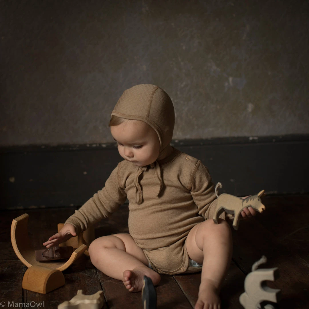 The wool is treated and you can wash this body on a 30 degree wool wash with wool detergent, please don’t tumble dry.