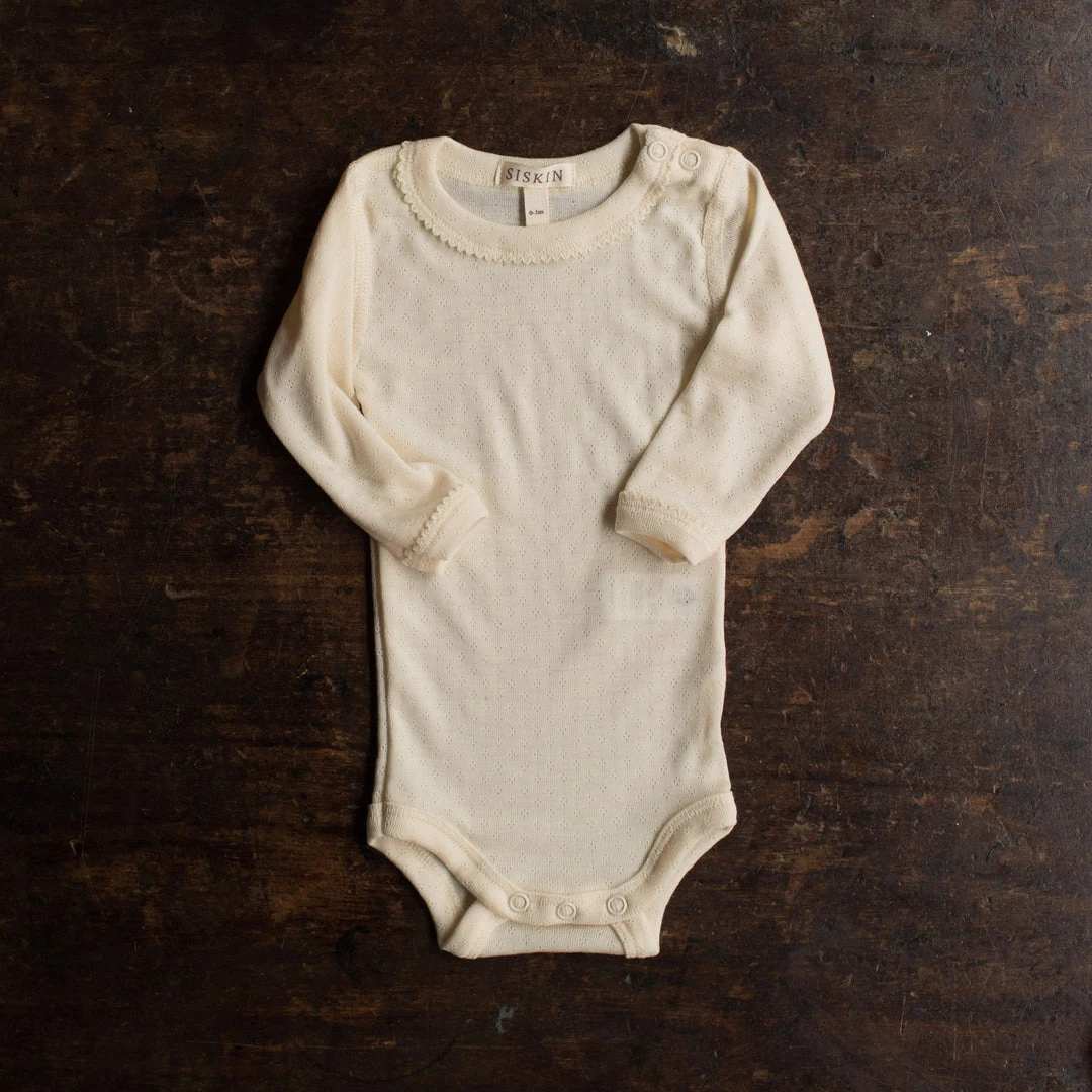 Super soft and perfect weight for winter, made from the softest wool and silk for extra comfort. Designed with a subtle pointelle pattern to add texture and picot edge. The perfect base layer.