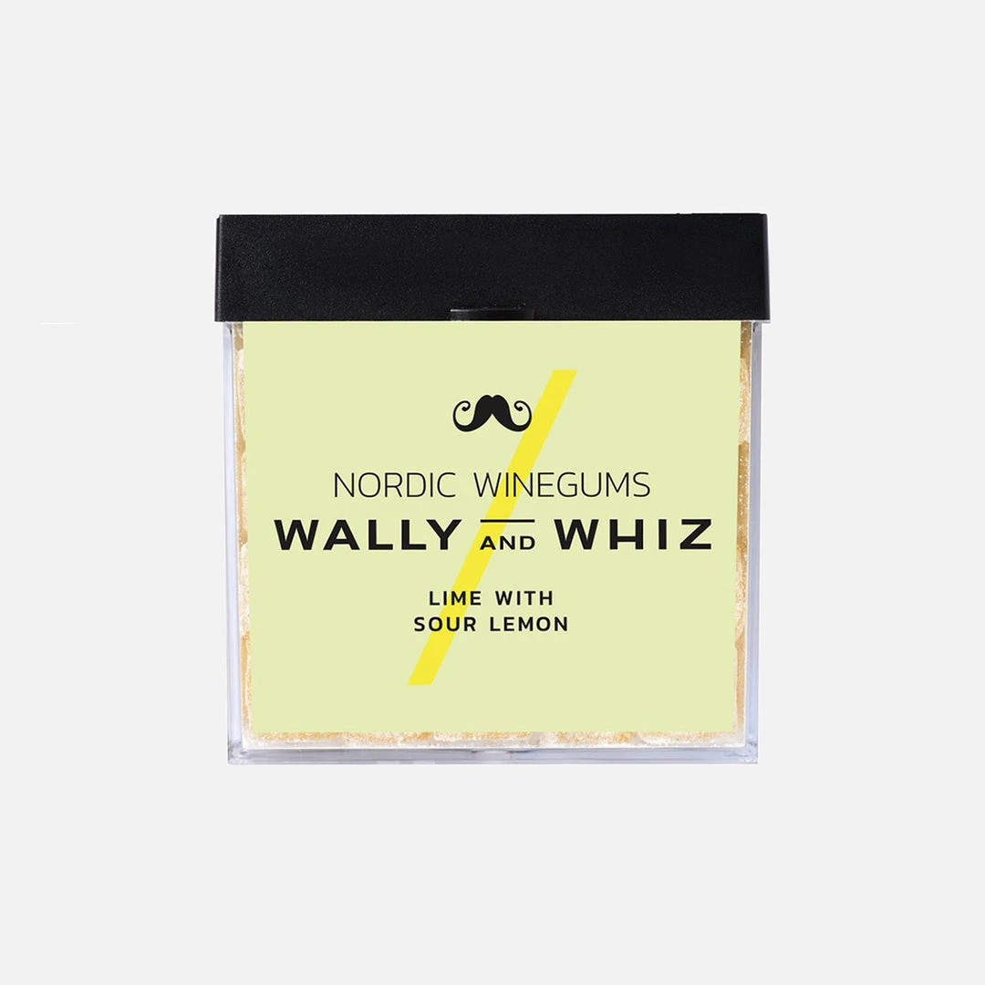 Delicious Nordic Winegums with Lime and sour lemon – sold as a cube of 140g.