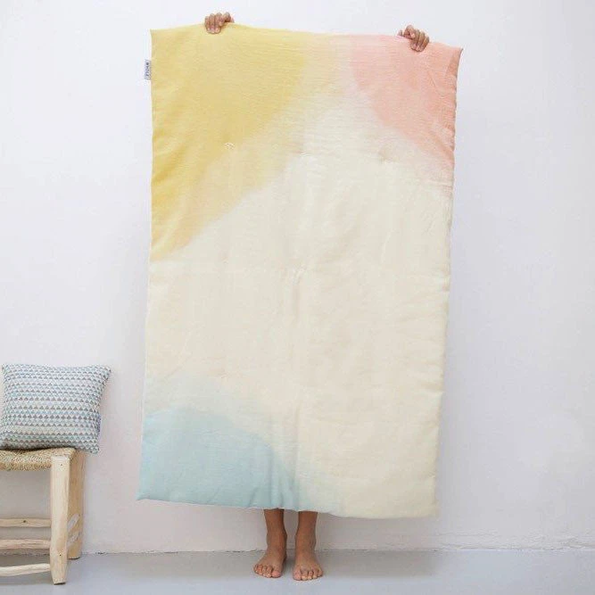 Mini Wawa is a baby quilt that has many uses. Use it in the cot, on the floor, in the sofa and in the park. Hand dyed and hand quilted.