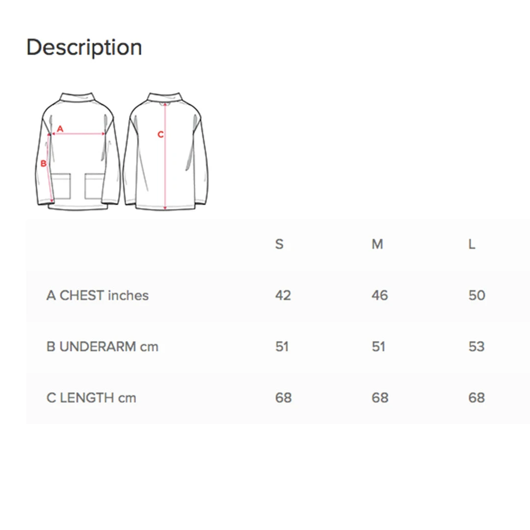 Please note, this style is based on a traditional fishing smock, worn loose as a protective garment over others. The fabric is non stretch , and it’s an over-the-head style so we suggest sizing up rather than down, to allow for ease of movement and dressing.