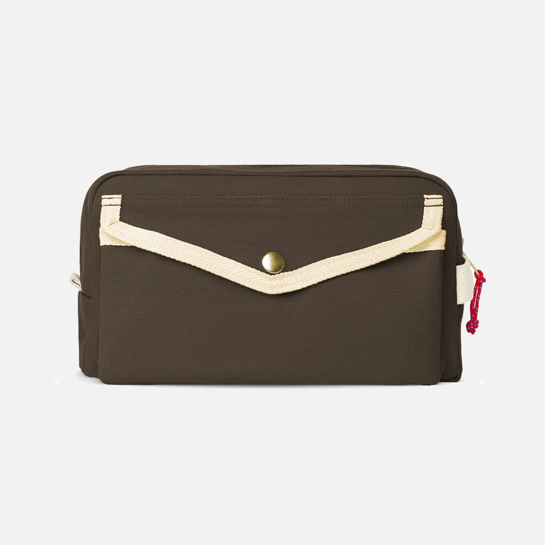 Roomy, thick cotton canvas bag, perfect to fill with all the toiletries you need for your travels. The outer pockets are designed to hold essentials. You can hang this bag in the bathroom if you need to. Features a flexible soft-shell structure and easy to fit inside another bag when travelling.